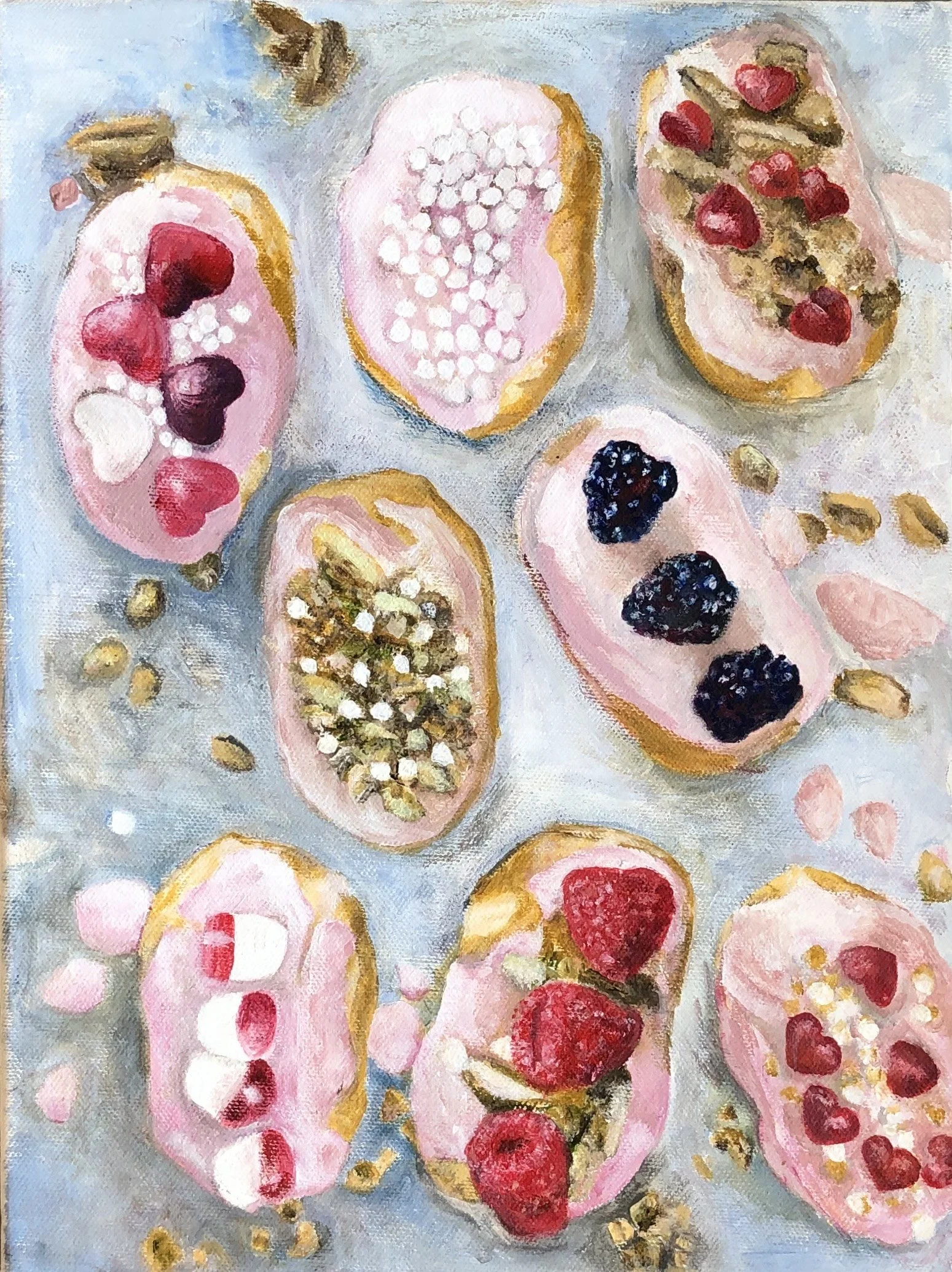 Myndirnar voru sýnar á einkasýningu í Hannersarholti í febrúar 2020. Málverkin bera ástríð Hönnu Hlífar fyrir að mála og elda ríkulegan vott. Í viðtali í Morgunblaðinu segir hún m.a. um myndirnar: ,,Ég starfaði um tíma sem gestapenni hjá tímaritinu Gestgjafinn og rakst á bunka af blöðum sem ég hafði gert uppskriftir fyrir – og þeim fylgja fallegar ljósmyndir. Þá kviknaði hugmynd að mála matinn minn, enda er ég alltaf að hugsa um mat. Þetta varð því eðlileg tenging við það sem mér finnst einna skemmtilegast að gera, að mála, elda og baka.‘‘